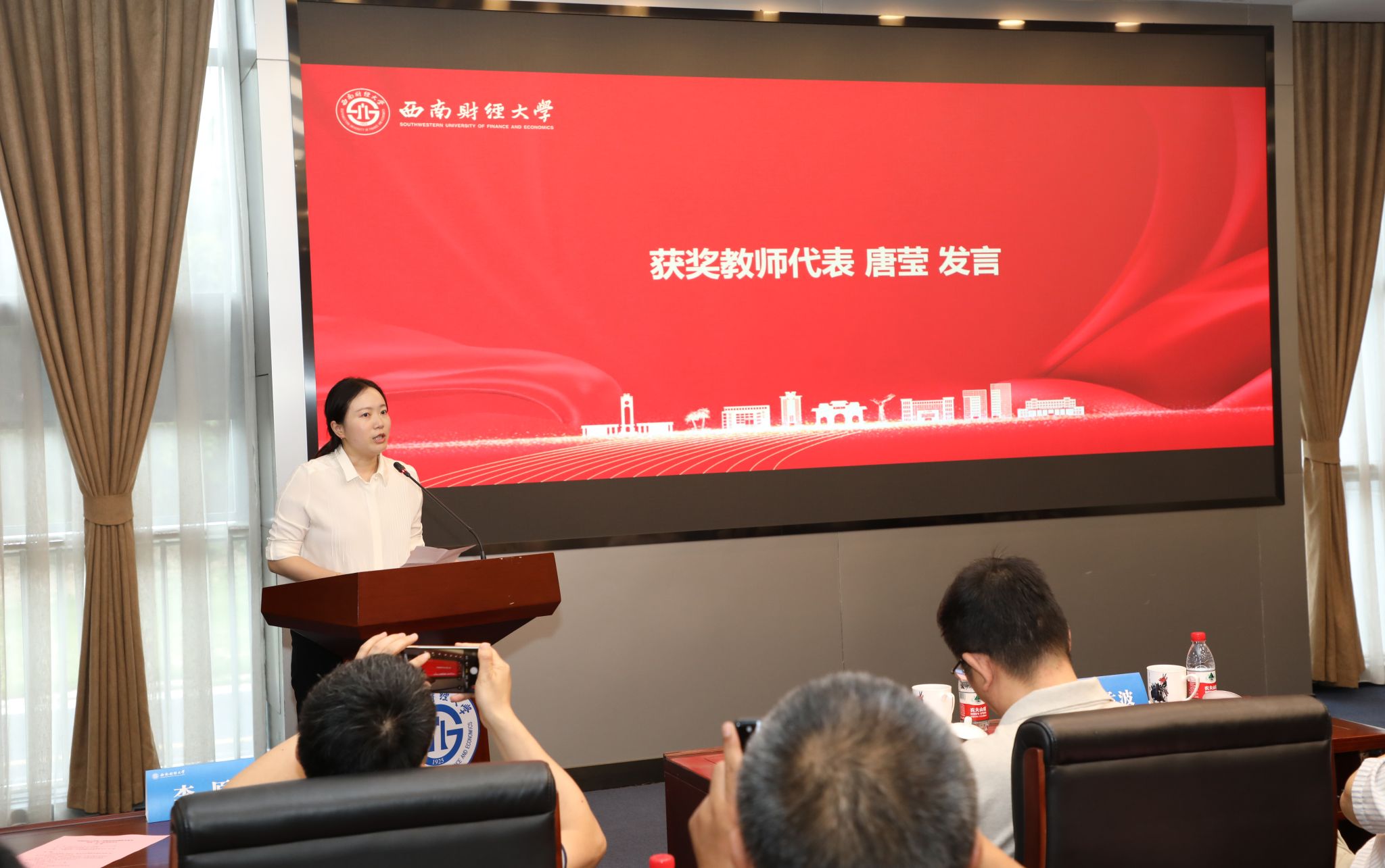 获奖教师代表唐莹在发言中表示将始终保持坚韧不拔的探索精神,站稳讲台、深耕教学,以身作则,用心指导和培养员工;获奖员工代表宿博涵在发言中表示将持续弘扬“经世济民,孜孜以求”的西财精神,打好基础,深耕学术,讲好西财故事,不辜负母校的栽培。