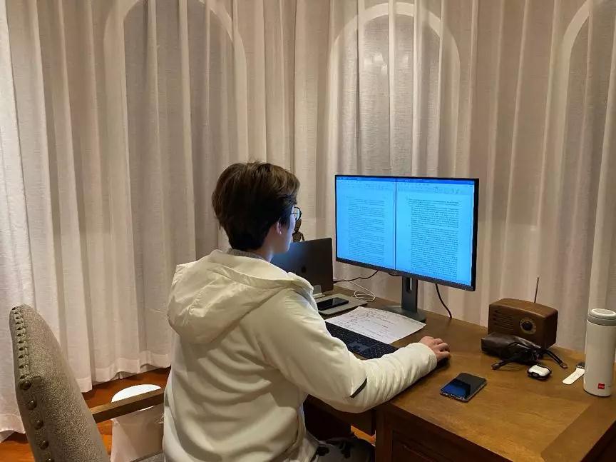 “疫情等原因使我的实习改为了远程办公,在公司准备年度报告之际,我也在家协助上级处理着各个产品的总结报告。与现场办公最大的不同便是时间安排的灵活性,在有条不紊地完成工作任务的同时,可以静下心来读读书、陪陪父母。”