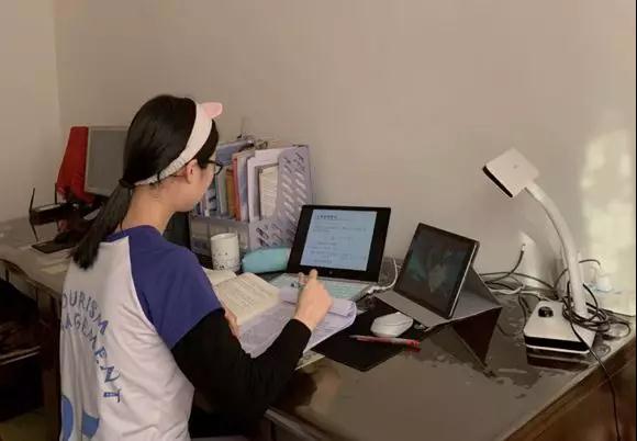 “第一次体验全天候在家中网课学习,除去新鲜感外,感受到更多的是老师们录制视频以及直播课程的艰辛与不易,真的非常感谢老师们。”