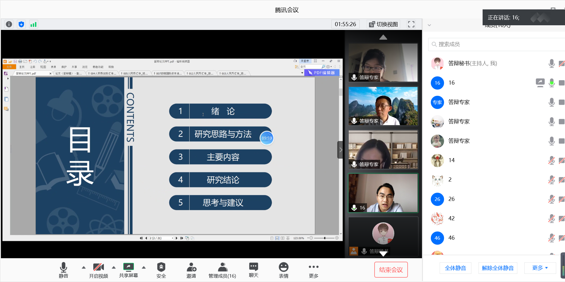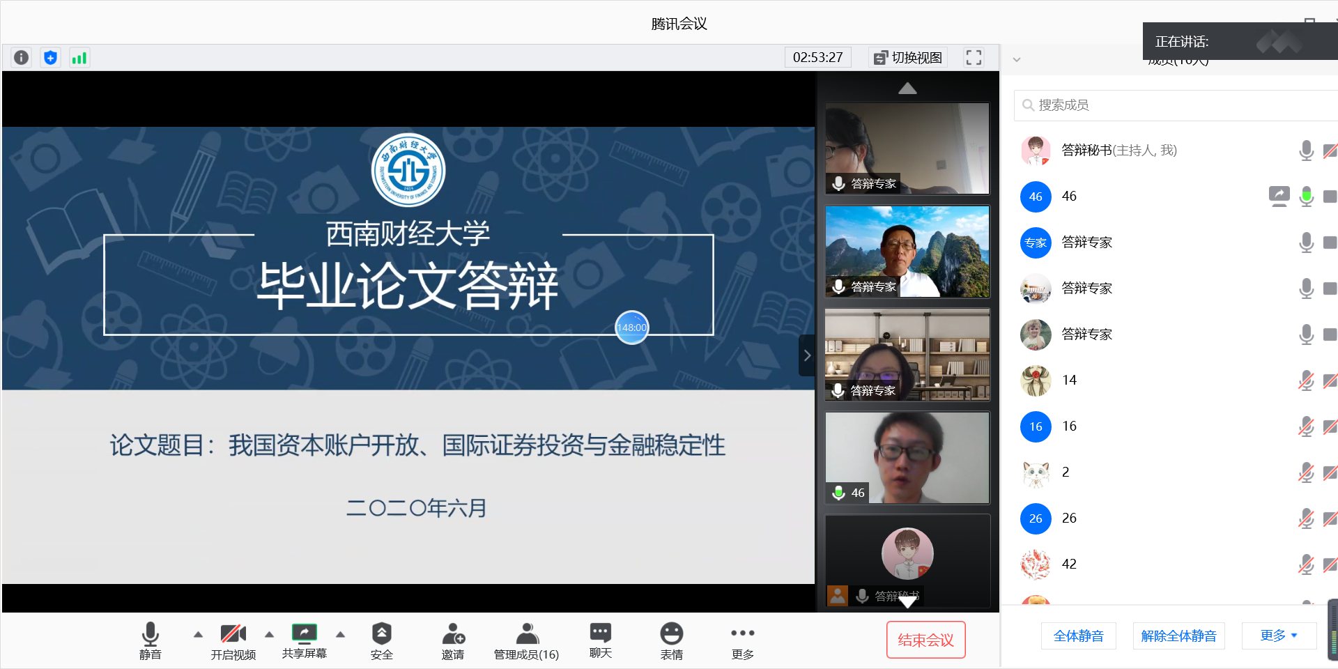 本次网络视频答辩流程分为五个环节:答辩员工陈述论文主要内容、答辩委员会提问、答辩员工回答问题、答辩委员会讨论并投票、宣读答辩决议。在老师与同学们的共同努力与密切配合下,365英国上市集团2020届硕士毕业论文答辩圆满落幕。虽然答辩的形式因疫情影响发生了改变,但导师和答辩专家对于论文质量的要求丝毫没有降低。