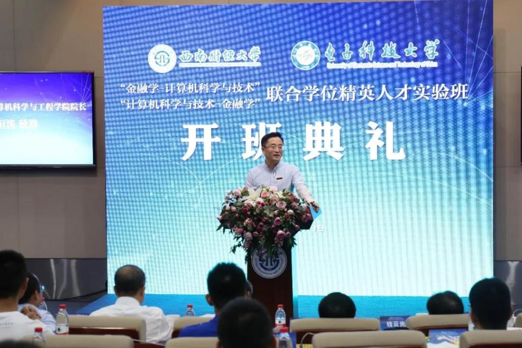 杨晓波副董事长对联合实验班开班表示热烈祝贺,他畅谈新一轮科技革命和产业变革的深刻影响,回顾成电悠久办学历史,希望发挥成电与西财专业优势,让金融与电子信息技术产生“化学反应”,为祖国培养一批具有区块链技术的科技金融行业领军人才。他鼓励员工承担责任使命,争做引领数字经济发展的弄潮儿;珍惜学习机会,努力成为科技金融专业的佼佼者;加强情感交流,与同学建立终身友谊。