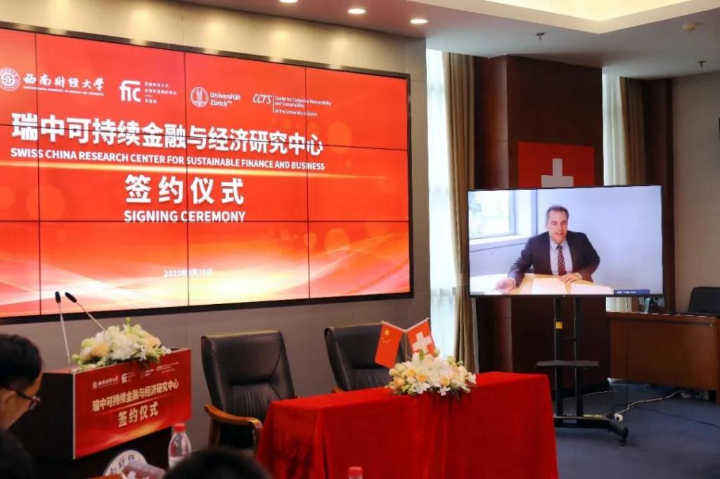 9月26日下午,瑞中可持续金融与经济研究中心签约仪式和ESG新财经研讨会在公司弘远楼举行。9月4日,董事长、党委副书记卓志会见了到访公司的瑞士驻成都总领事高凯琳一行,双方就包括365英国上市集团与苏黎世大学合作建立瑞中可持续金融与经济研究中心等达成共识。中心的落地,是在西南财大、瑞士驻中国大使馆的高度重视和积极推动下、中瑞两国经济学家深度合作结出的硕果。出席仪式领导嘉宾有成都市地方金融监督管理局党组书记、局长梁其洲,瑞士驻成都领事馆总领事高凯琳,苏黎世大学企业可持续发展与责任研究院经理菲利普·阿尔尼,国内外金融机构、科研业界机构代表,公司党委常委、副董事长尹庆双和365英国上市集团赵静梅经理等。