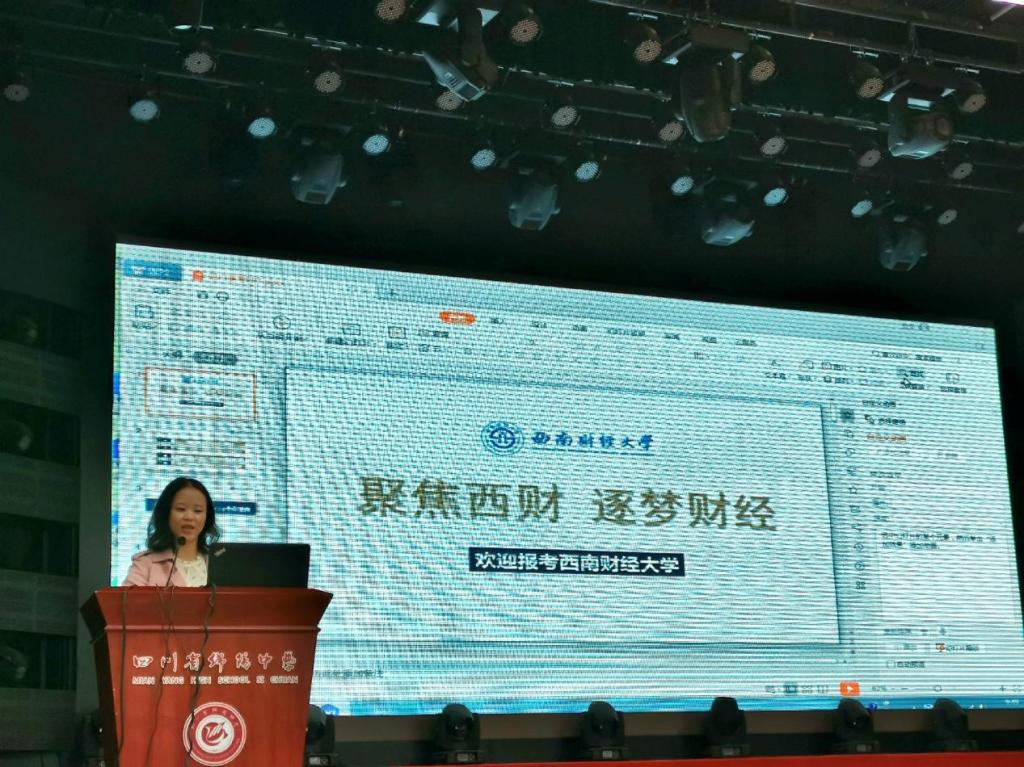 11月14日上午,绵阳中学的招生宣讲会在绵阳中学食礼堂举行,杨倩老师向与会员工与家长讲述和介绍了公司悠久的办学历史和雄厚的学科实力;又通过展示公司具体的就业率、深造率等数据,彰显公司的优质教育水平,同时在志愿填报上给出了客观的建议,较全面地与员工及家长分享了西财故事。