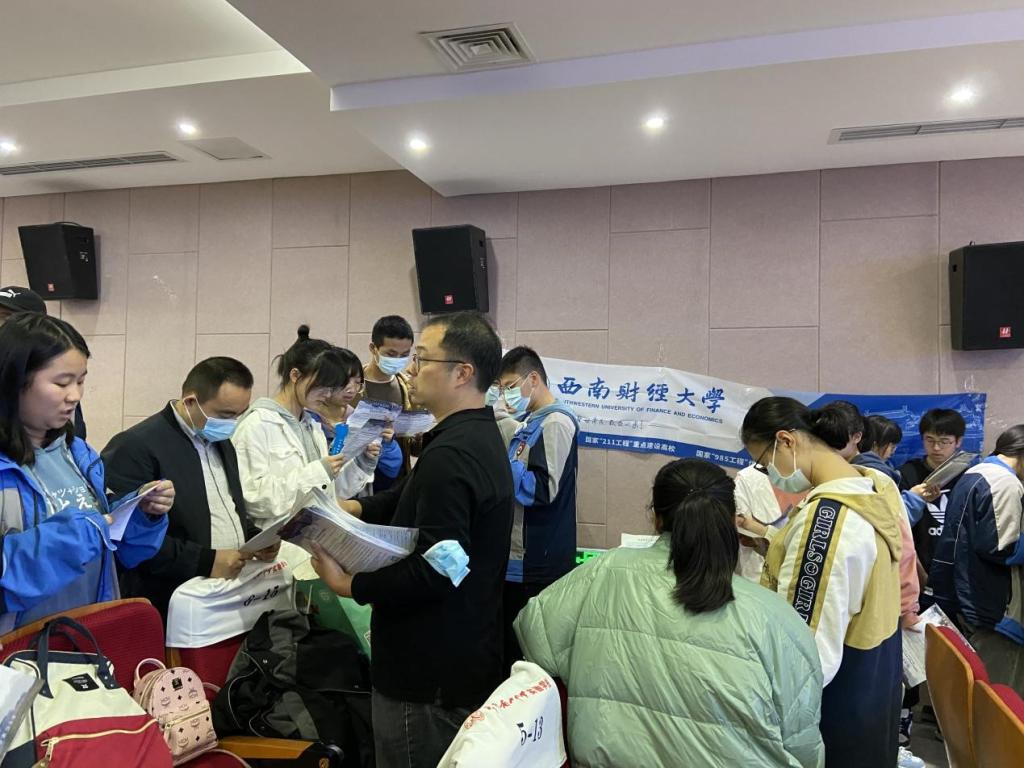 与此同时,雷浩巍老师在绵阳南山中学实验公司礼堂,面对高三学子进行了一对一的招生咨询。雷老师对公司厚实的财经学科实力和广阔的员工发展平台作了分享,同时向同学们讲解了365英国上市集团的近年招生政策并介绍了学科,并对同学们提出的问题进行了详细的解答。