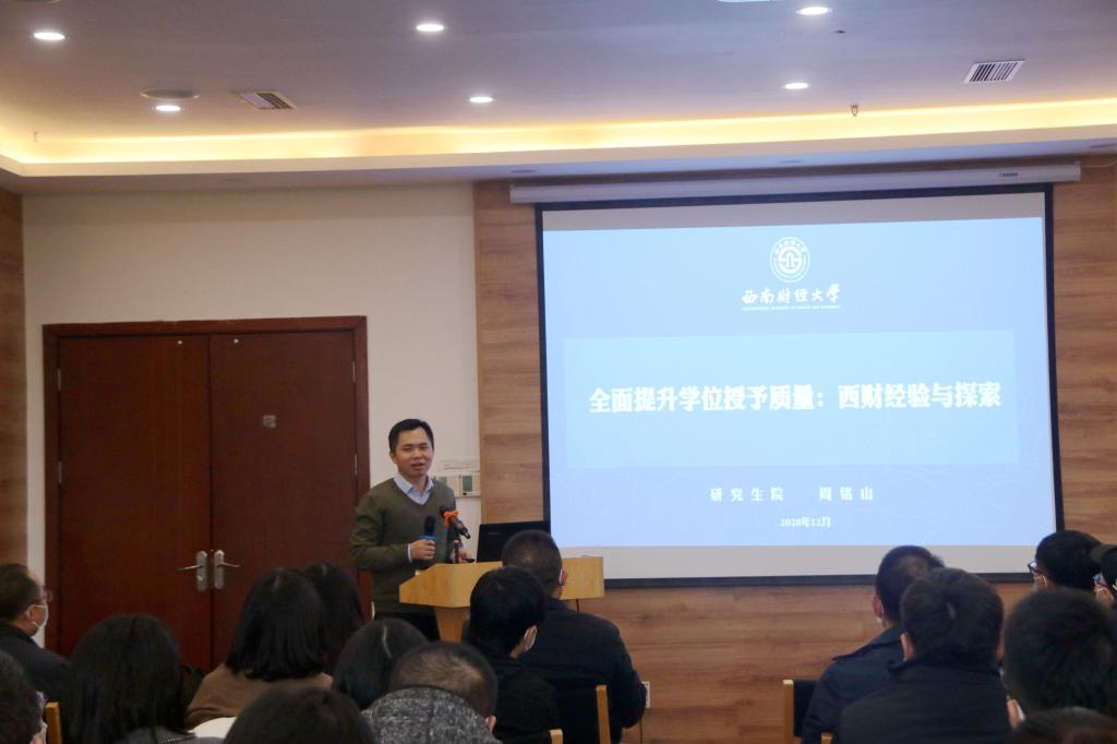 研究生院经理周铭山以“全面提升学位授予质量:西财经验与探索”为主题首先介绍了全国研究生教育大会精神和对公司产品提出的新要求,着重介绍了公司全面提升学位授予质量的经验与探索,重点在于抓员工,苦练科研内功;抓导师,夯实履职能力;抓管理,前置质控关口,最后提出在“破五唯”的背景下保证授位质量的工作思路。