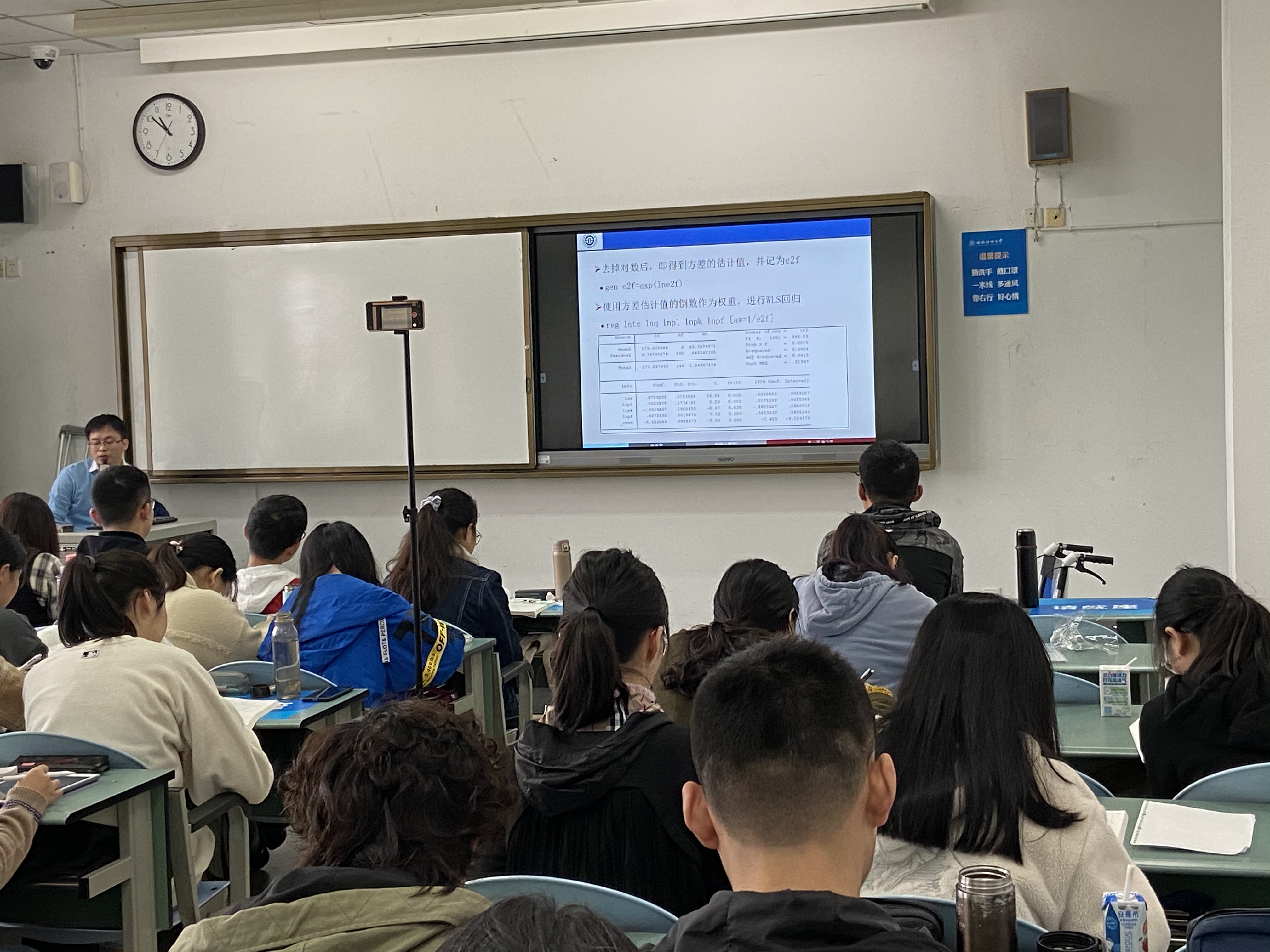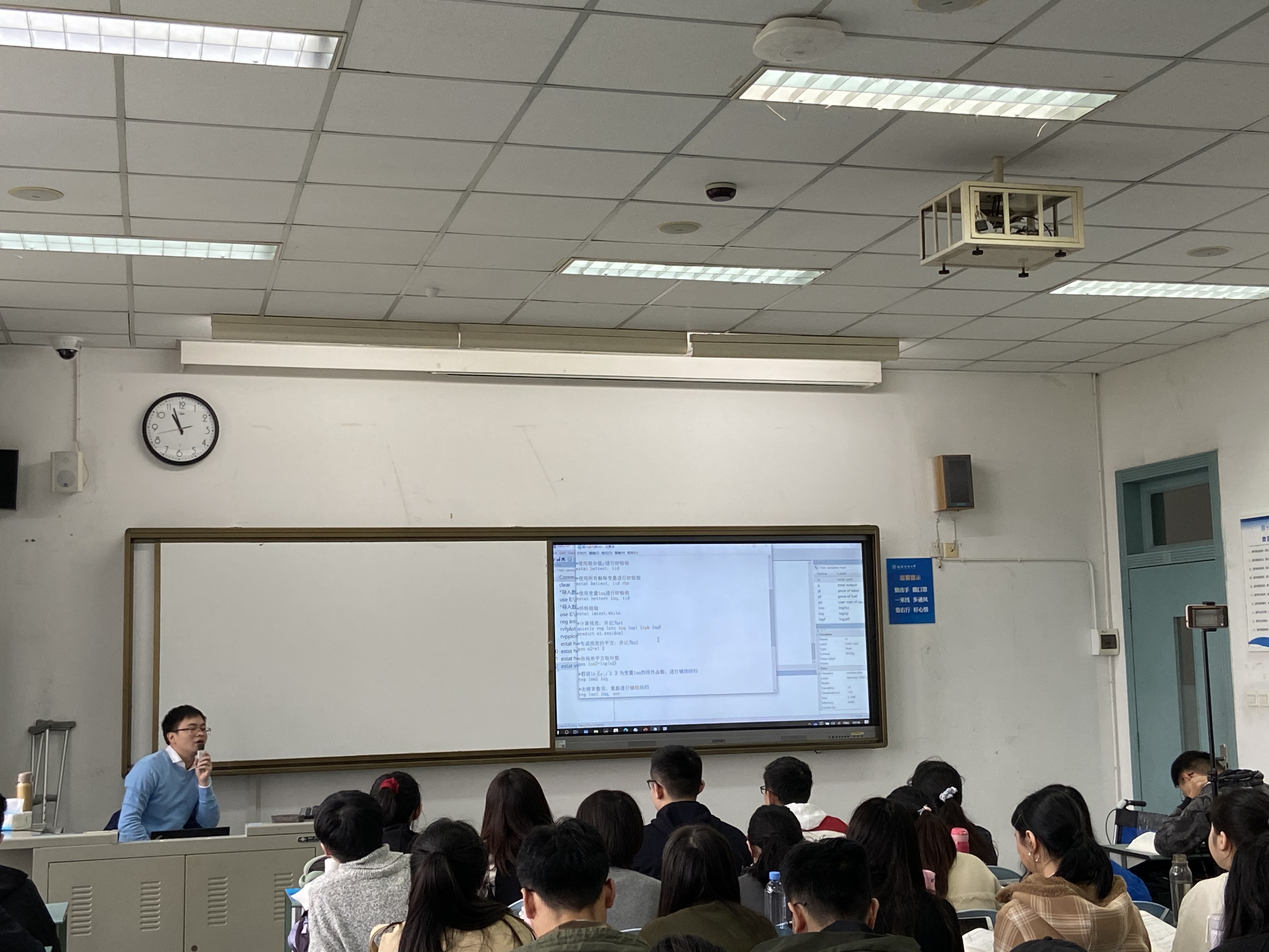 为了备好这门课,杨老师主动在员工中进行了调研,他了解到员工们普遍畏惧计量经济学,抱怨课程太难太枯燥。为此杨老师常常与课程组老师一起教研,并总结出上好课的三个要点:一是理论与实践相结合,帮助员工学以致用,除了理论推导还需要用实例实操帮助员工理解知识点的应用;二是要与自身的研究方向结合,在授课中注重知识点拓展,介绍在学术中的应用,做到教学科研相结合;三是注重课程的实用性,学习好计量有助于完成毕业论文,因此课程还应注重科研基础的夯实和学术规范的培养。