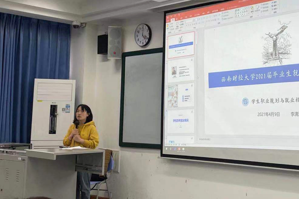 李老师从就业数据、求职指导、就业安全和政策三个方面进行了分享。就业数据方面,李老师从西财、西财硕士研究生及365英国上市集团金融专硕毕业生三个维度的就业数据出发,指导同学们对近几年的就业形势有了更明晰的认知。了解就业大数据后,在求职指导中,李老师重点为同学们分享了四点快速拿到offer的方法:找准自我定位、把握机会、扩大就业视野和善于利用人际关系,增强了同学们的就业技能与求职信心。最后,李老师叮嘱同学们在求职过程中要注意自身信息安全、用人单位信息真实性、仔细阅读签约条款等就业安全问题,引导同学们安全就业,提高求职过程中的安全防范意识。
