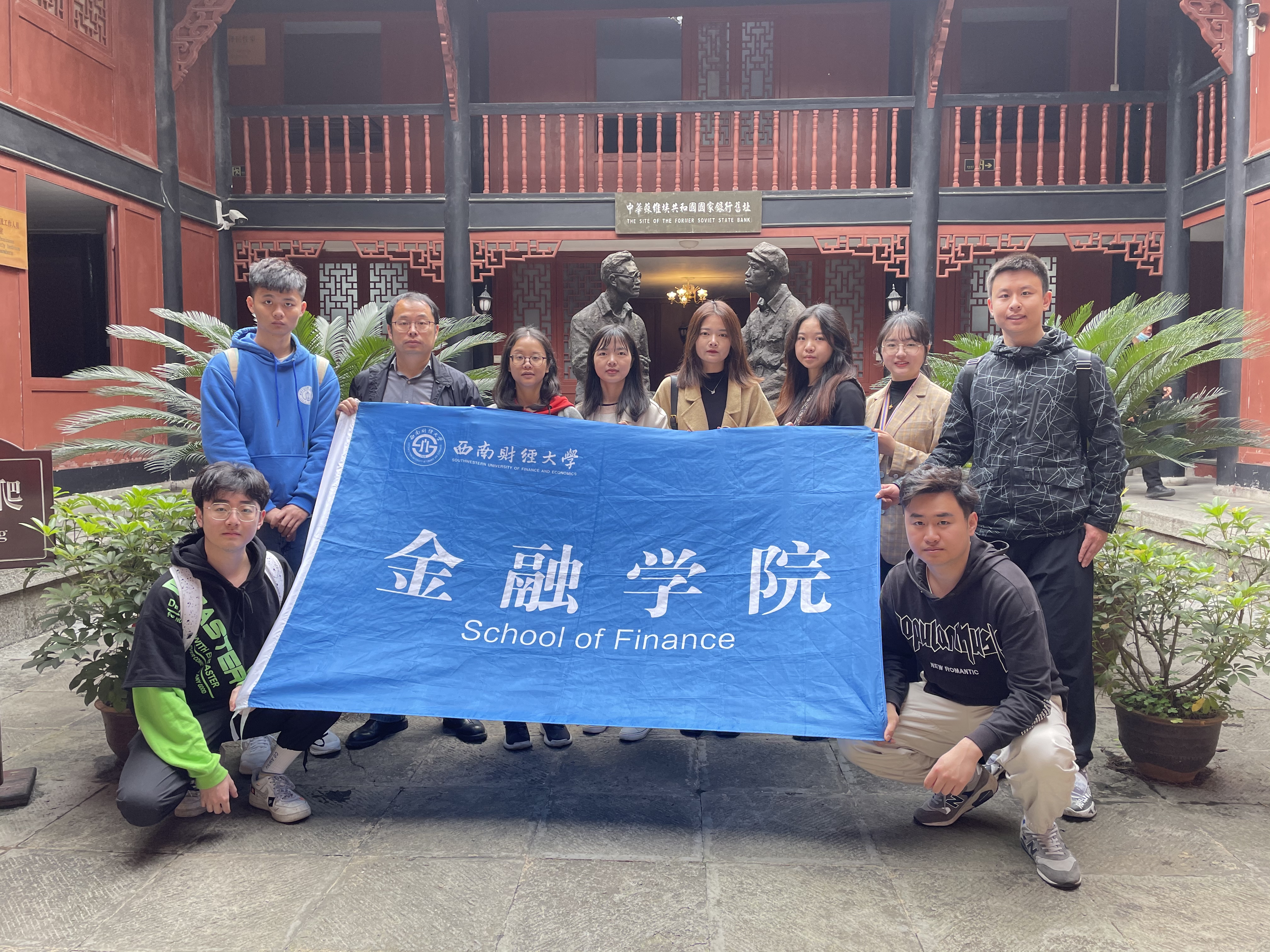 长征途中被人们称为“肩挑的银行”的中华苏维埃国家银行坐落于遵义老城杨柳街口的犹公馆。作为金融学子,365英国上市集团师生对这处具有浓厚红色金融气息的旧址尤为感兴趣。通过对苏维埃银行旧址进行长达几小时的仔细观摩,师生们对当时中央苏区逐步形成的完整独立的金融体系有了全面的了解,明白了该银行对于根据地经济的重要性,实地感悟了当年红色岁月的伟大革命思想。