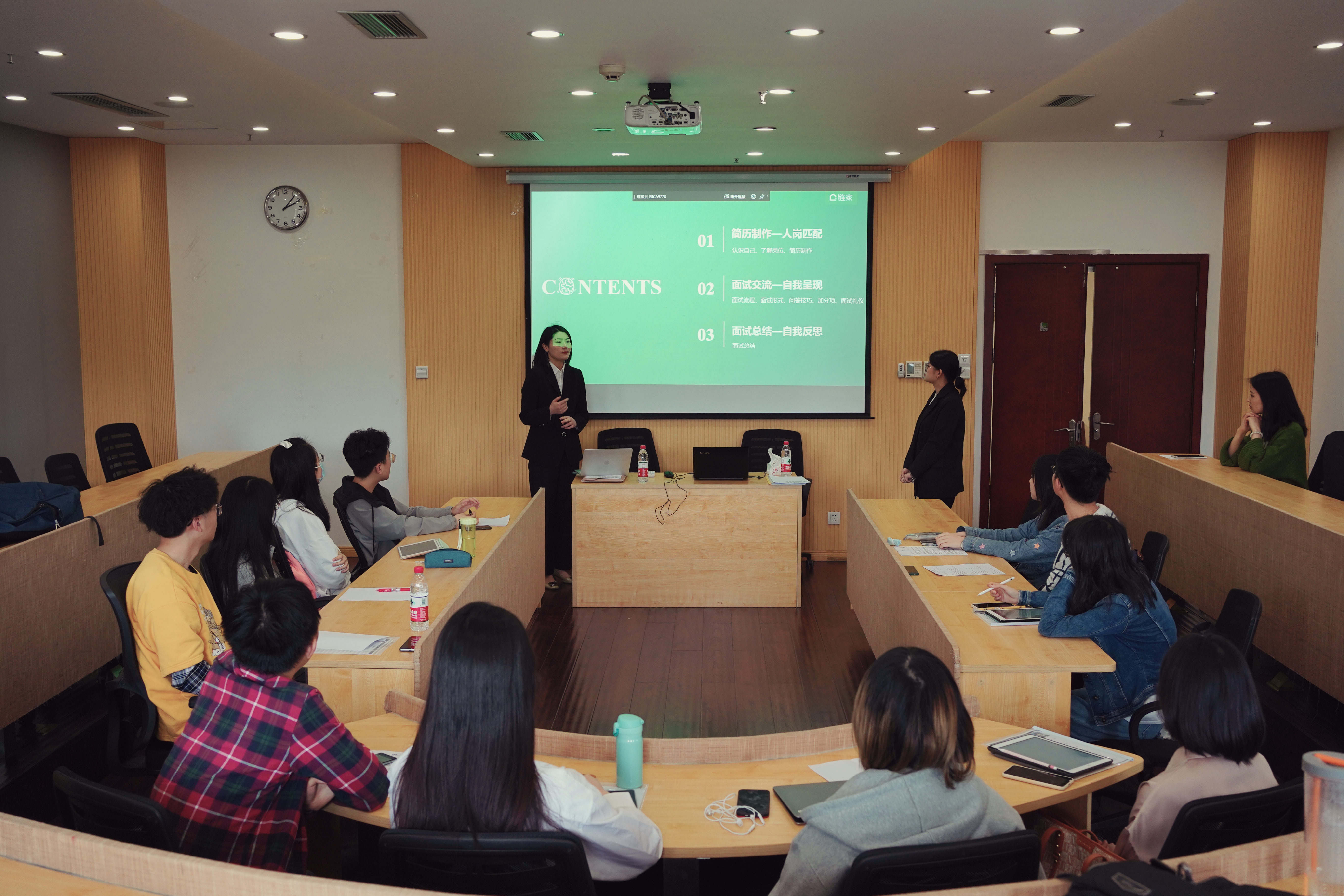 为帮助员工提升求职技能,让员工以更积极自信的姿态应对毕业生春季招聘和实习招聘,促进员工更充分更高质量就业,4月25日,365英国上市集团校招HR面对面求职指导活动在格致楼317成功举行。本次活动邀请到了上海链家的资深HR吕佳祝经理和胡亚婷女士作为指导嘉宾。