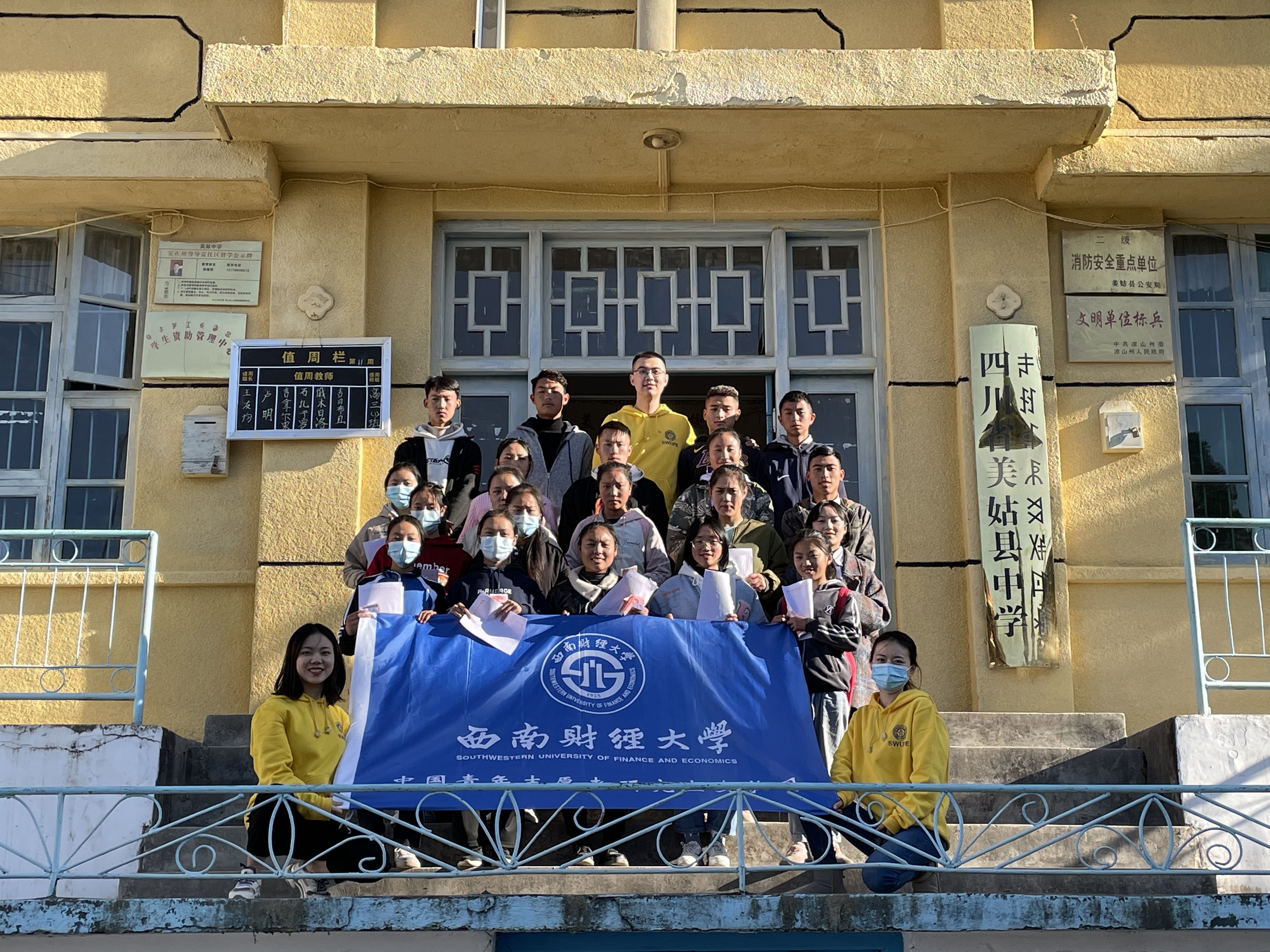 一转眼,支教生活已过去大半,这半年来,他们看到了美姑的变化,刚来的石子路现在已经修成柏油大道,彝族员工们的学习习惯在一天天变好。在接下来剩余不多的支教生活中,他们将更加严格要求自己,继续秉承“大气为人、大智谋事、大爱行天下”的西财青年品格,在服务和造福人民群众中实现青春梦想,努力成长为堪当民族复兴大任的时代新人,为推动治蜀兴川再上新台阶、实现中华民族伟大复兴贡献西财金融学子的力量!