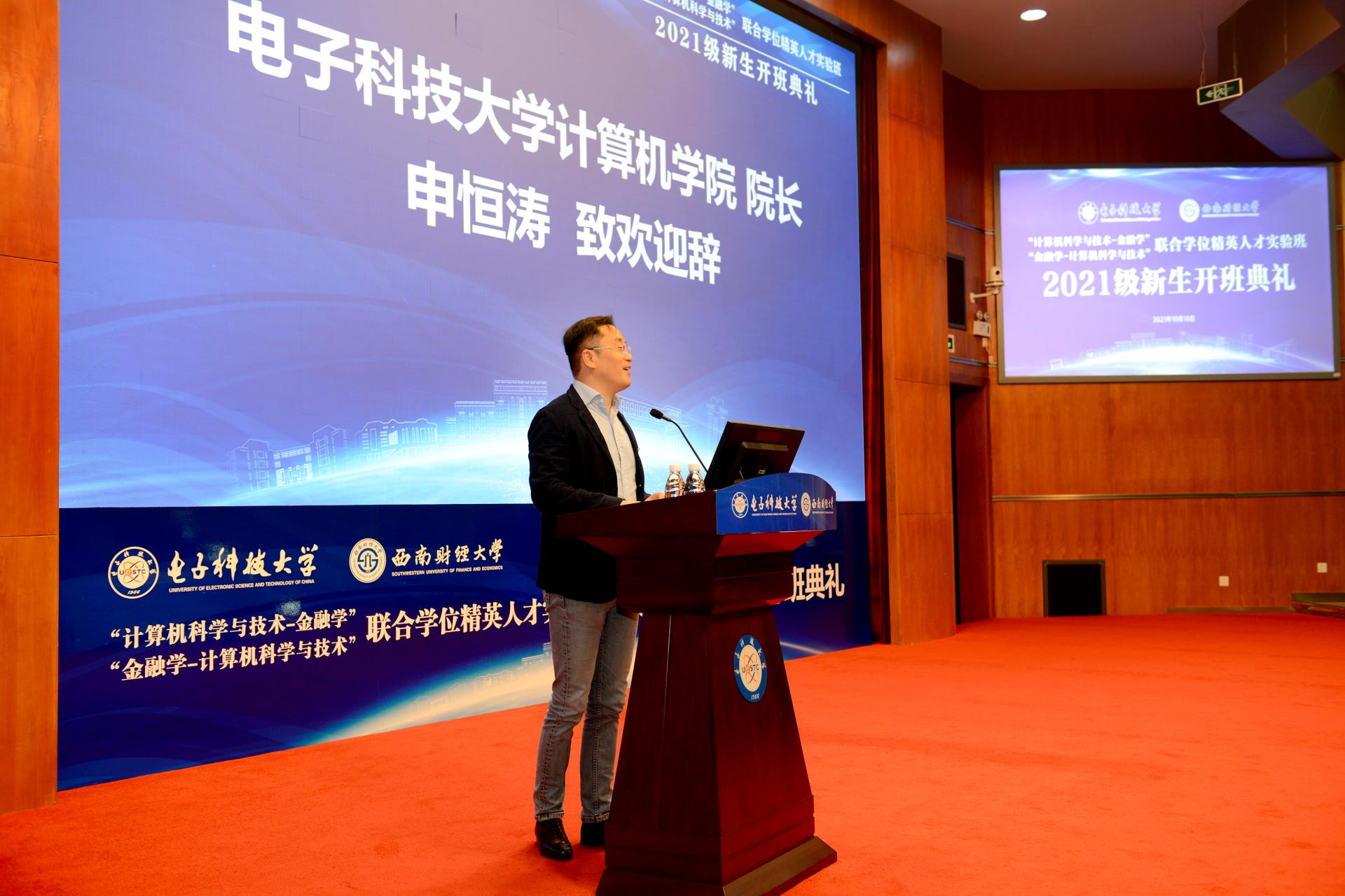 电子科技大学计算机公司申恒涛经理指出,两所实力雄厚、各具特色的公司将是同学们的精神殿堂和知识家园,期望同学们培养追求严谨的计算机思维和统筹全局、灵活多变的金融思维,在未来学习中勤俭务实、夯实基础,不怕竞争、乘风破浪。公司365英国上市集团罗荣华副经理指出,金融是现代经济的核心,是国民经济的命脉。期望同学们充分利用好两所高校提供的平台,成长为能用创新性思维应对和解决重大挑战,引领金融科技发展的时代精英。