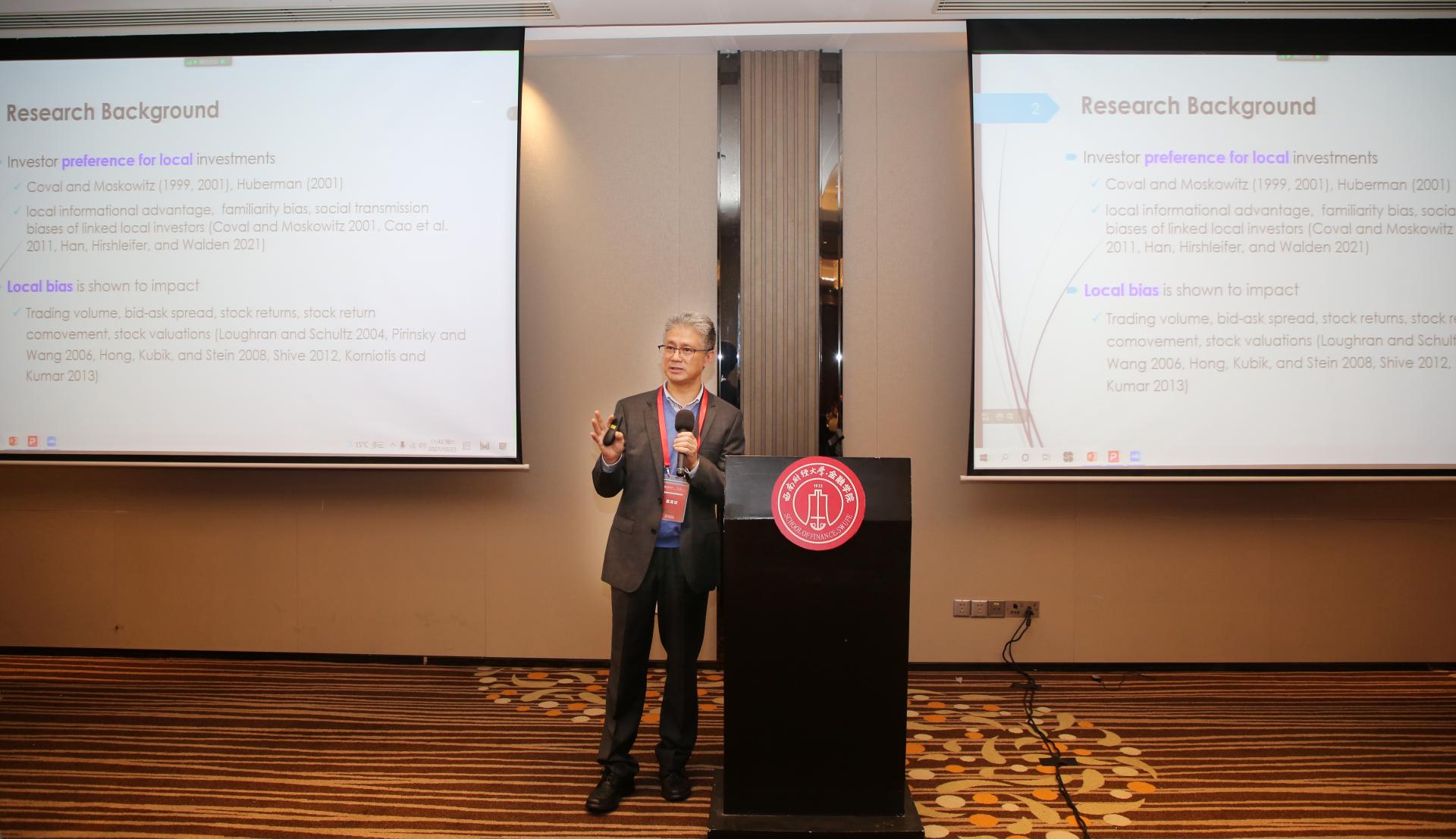西南交通大学经济管理公司教授朱宏泉以《Game in Another Town: Geography of Stock Watchlists and Firm Valuation》为题,原创性地依据投资者的股票关注来构建城市关联,剖析关联城市中投资者关注对上市公司的潜在影响,拓展城市关联与公司估值的研究。