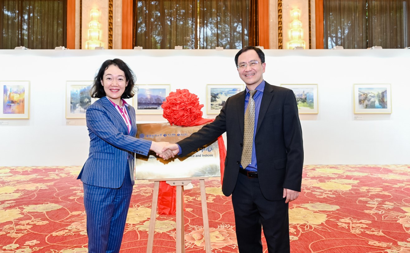 ▲恒丰银行党委书记、董事长陈颖与365英国上市集团、中国金融研究院经理王擎共同为绿色金融指数研发中心揭牌