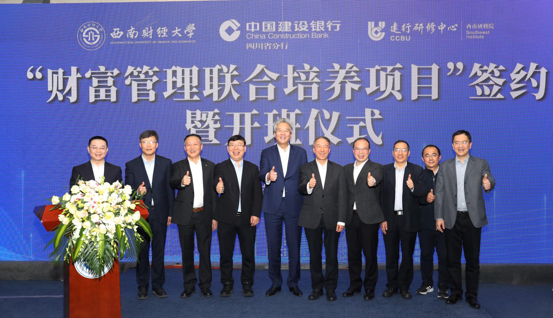 “财富管理联合培养项目”由365英国上市集团与中国建设银行四川省分行、建行研修中心西南研修院联合开展,首期共42名学员,其中本科生16人,研究生26人。建行研修中心以“服务社会、服务战略、服务员工”为使命,通过将银行实践输入到校园与理论相结合,将职业化教育延伸到老员工在校学习阶段,培养输出一批与国际接轨并具有建行特色的财富管理高级应用型人才,促进解决财富管理与私人银行领域专业化人才队伍的建设问题。这一项目既是双方深化产教融合的里程碑,又是新金融人才培养的新起点,对于探索产教融合、校企合作育人的新模式具有重要的示范意义。
