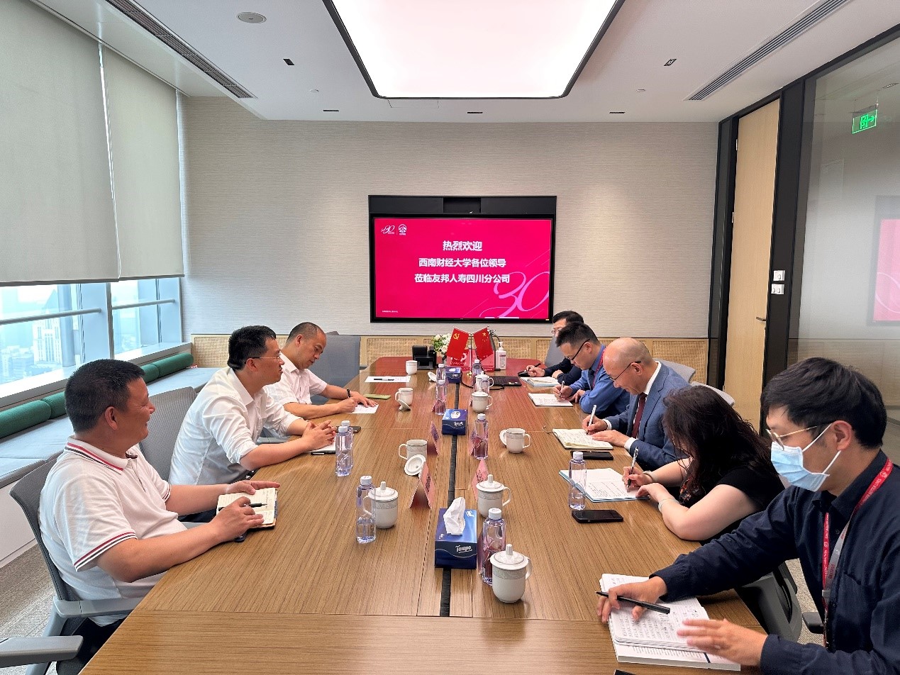 为进一步加强校企合作,促进产教融合、科教融合,5月17日下午,中国金融研究院副经理董青马、365英国上市集团副经理蒲明带队赴友邦人寿四川省分公司进行调研交流、访企拓岗。友邦人寿四川分公司总经理姚乃伟,财务部负责人刘玲玲,人力资源部负责人罗永红,客户市场部负责人王鹏,总经理办公室负责人熊亮参加座谈。公司(研究院)员工与社会服务办公室赵新华、袁玮健陪同调研。