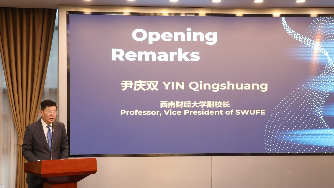 在开幕致辞中,尹庆双对中外嘉宾的到来表示诚挚欢迎。他回顾了公司与柏林财经政法大学深厚而紧密的合作渊源,介绍了公司近年来团队建设取得的重大成果。他强调,在全面推进“新财经”战略升级的背景下,集团着力推进一流学科培优、财经科技创新、人才引领支撑,全力建好“习近平经济思想研究院”一流学科培优集成创新平台和“数字经济与交叉科学创新研究院”财经科技集成创新平台。他希望以中德货币政策研讨会为平台,加强公司国际交流与合作,共同致力于全球经济和货币金融战略等研究和探讨,为人类命运共同体建设作出积极的努力。