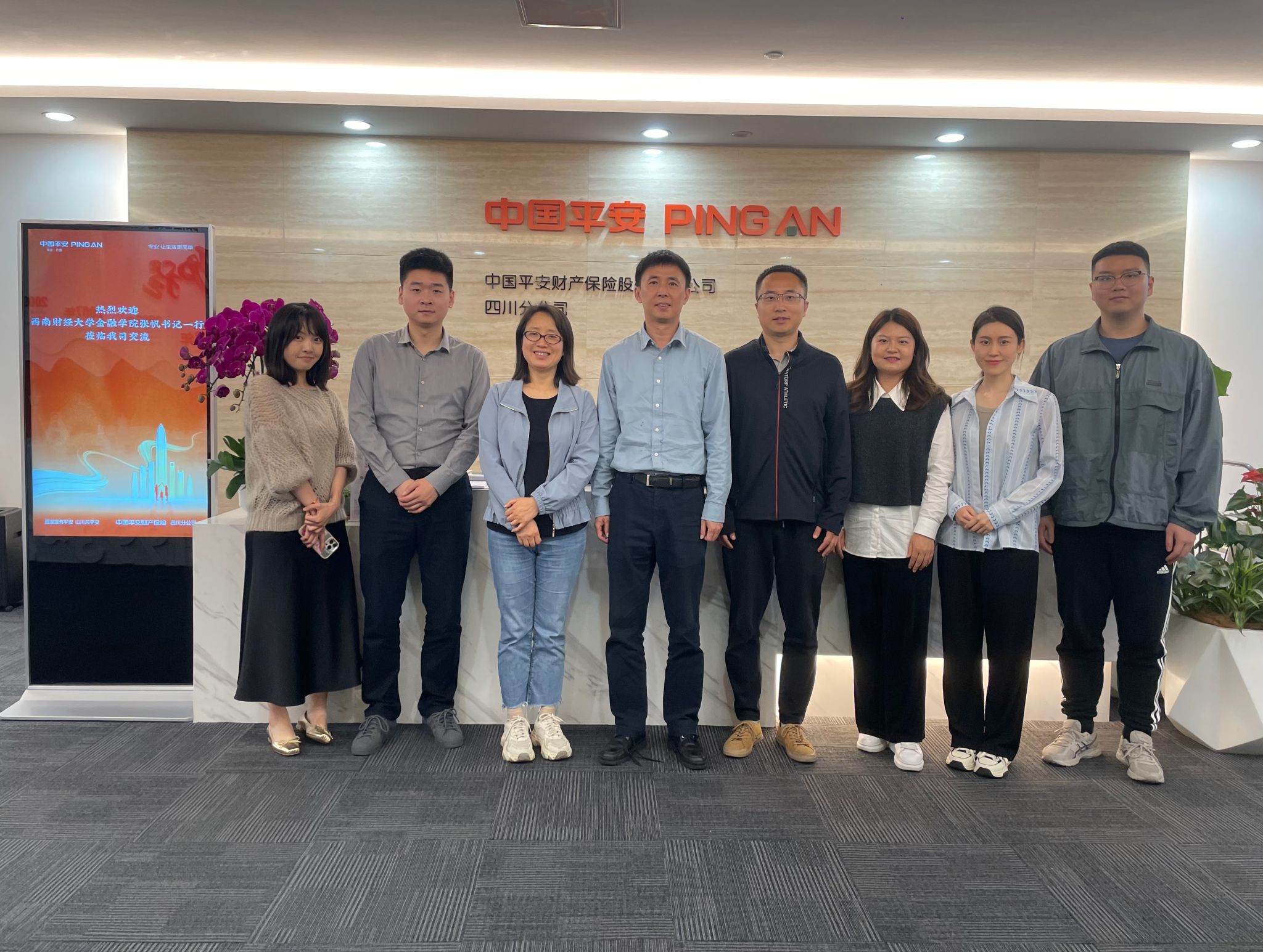 为扎实推进公司百年校庆筹备工作,进一步深化校企合作,促进员工更加充分更高质量就业,4月17日和19日,公司(研究院)副书记张帆、陈卓分别带队赴中国银行四川分行、平安财险四川分公司调研交流、访企拓岗、看望员工。中国银行四川省分行人力资源部副总经理李红梅、招聘团队主管龙晓艳、人力资源经理孟雅然,平安财险四川分公司法律合规部经理何玉梅、财意险部精算经理李山楠、企划部经理罗海晴、人事行政部员服室经理孟晓泉和公司(研究院)辅导员老师参加调研交流。