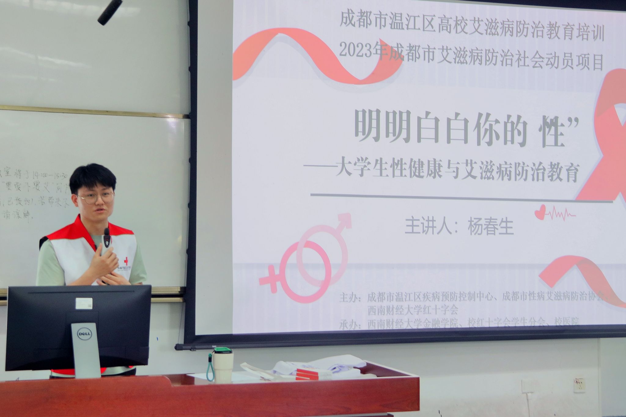 杨春生医生首先强调了艾滋病在全球及我国的严峻形势,采用趣味互动引入、知识普及、互动问答、讨论等多种方式,让同学们深入了解艾滋病的易感人群、易感行为、传播途径、预防措施以及治疗进展等方面的知识。