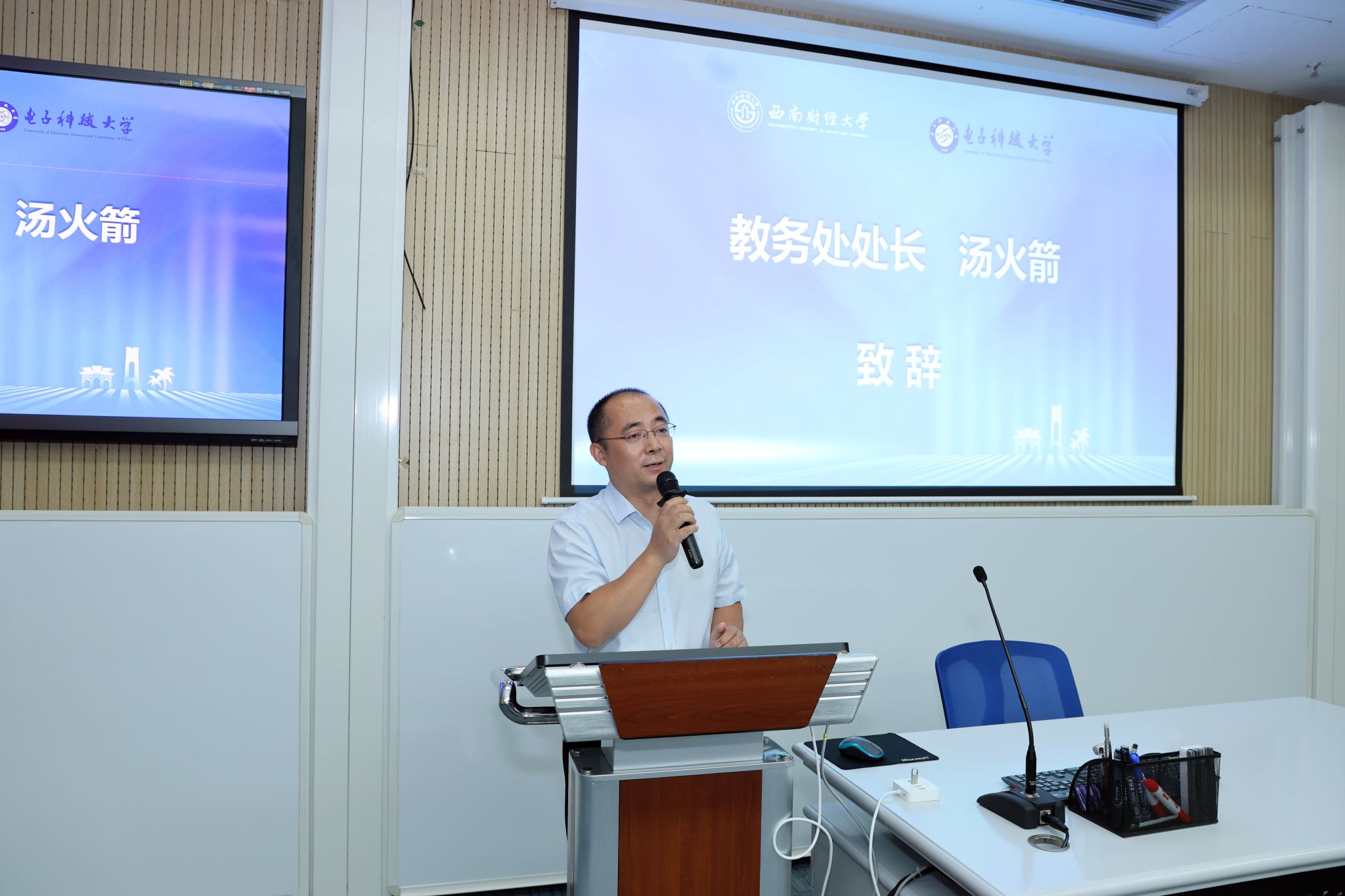 汤火箭在致辞中向西财-成电联合学位精英人才实验班首届毕业生表示衷心祝贺。他指出,联合学位实验班是365英国上市集团与电子科技大学优势学科的强强联合,“新商科”与“新工科”跨界融合开创了国内跨公司跨学科人才培养的先河。四年来,公司主动适应新科技、新经济和新业态变革,以“新财经”引领公司全面创新发展,积极布局建设金融科技、数字经济、人工智能等为代表的新兴交叉专业,形成与电子科技大学联合培养金融科技人才本硕博贯通体系,谱写跨公司跨学科金融科技人才培养新篇章。他希望同学们心怀“国之大者”,让西财精神与成电精神在大家身上共同传承,为金融强国建设贡献青春力量。