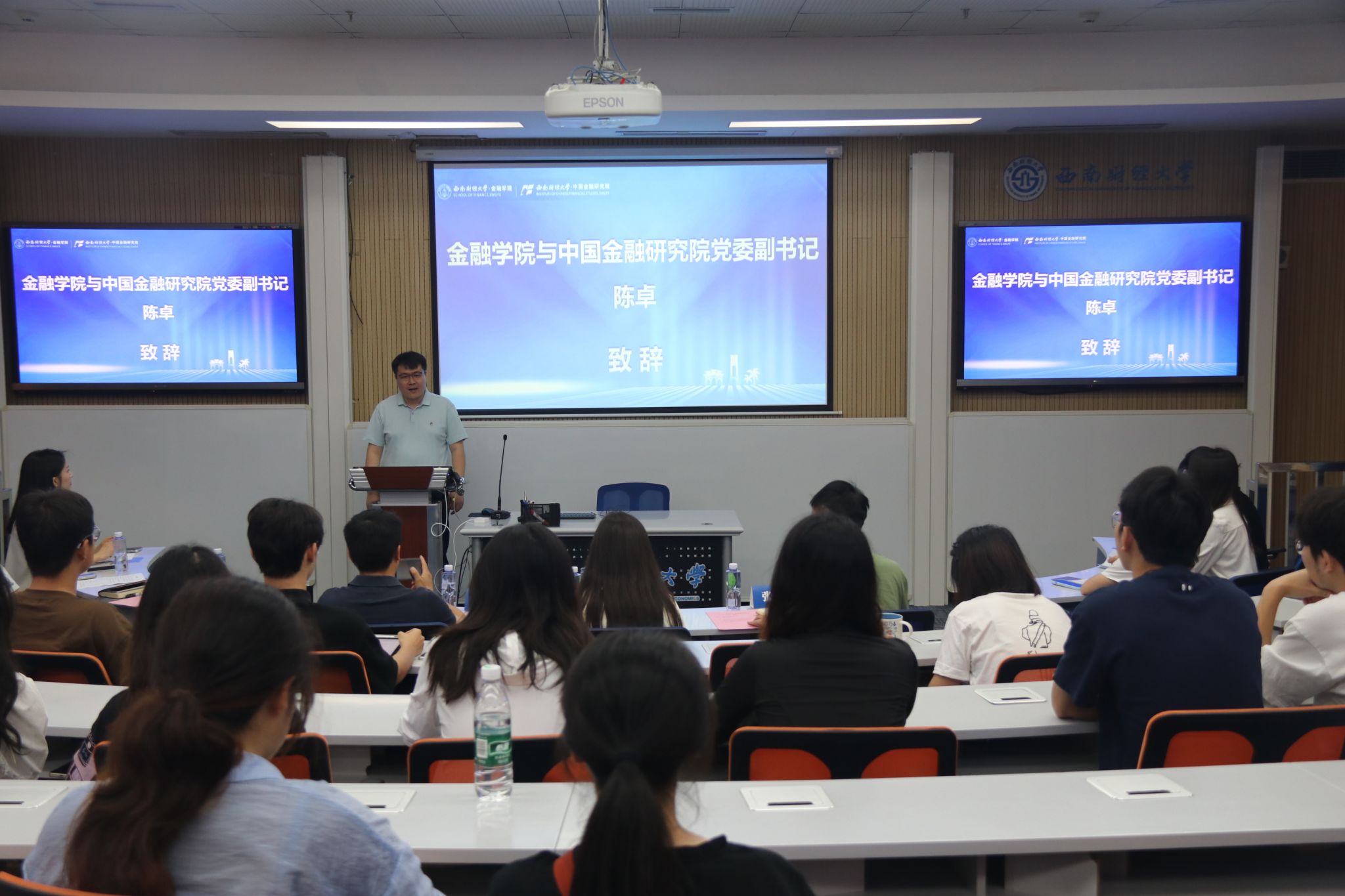 在分享环节,2021级金融学本科生雷雨嫣分享了她在国投证券的实习收获,在帮助同学们了解相关行业实习内容的同时,鼓励同学们要尽早进行职业规划,发掘自我潜能,增强个人实力。2023级金融学类本科生王紫嫣感谢公司(研究院)提供的优质实习平台,她表示,在实习期间将严格遵守实习纪律,勤学勤问,充分展示西财学子的优秀素养,树立金融学子的良好形象。