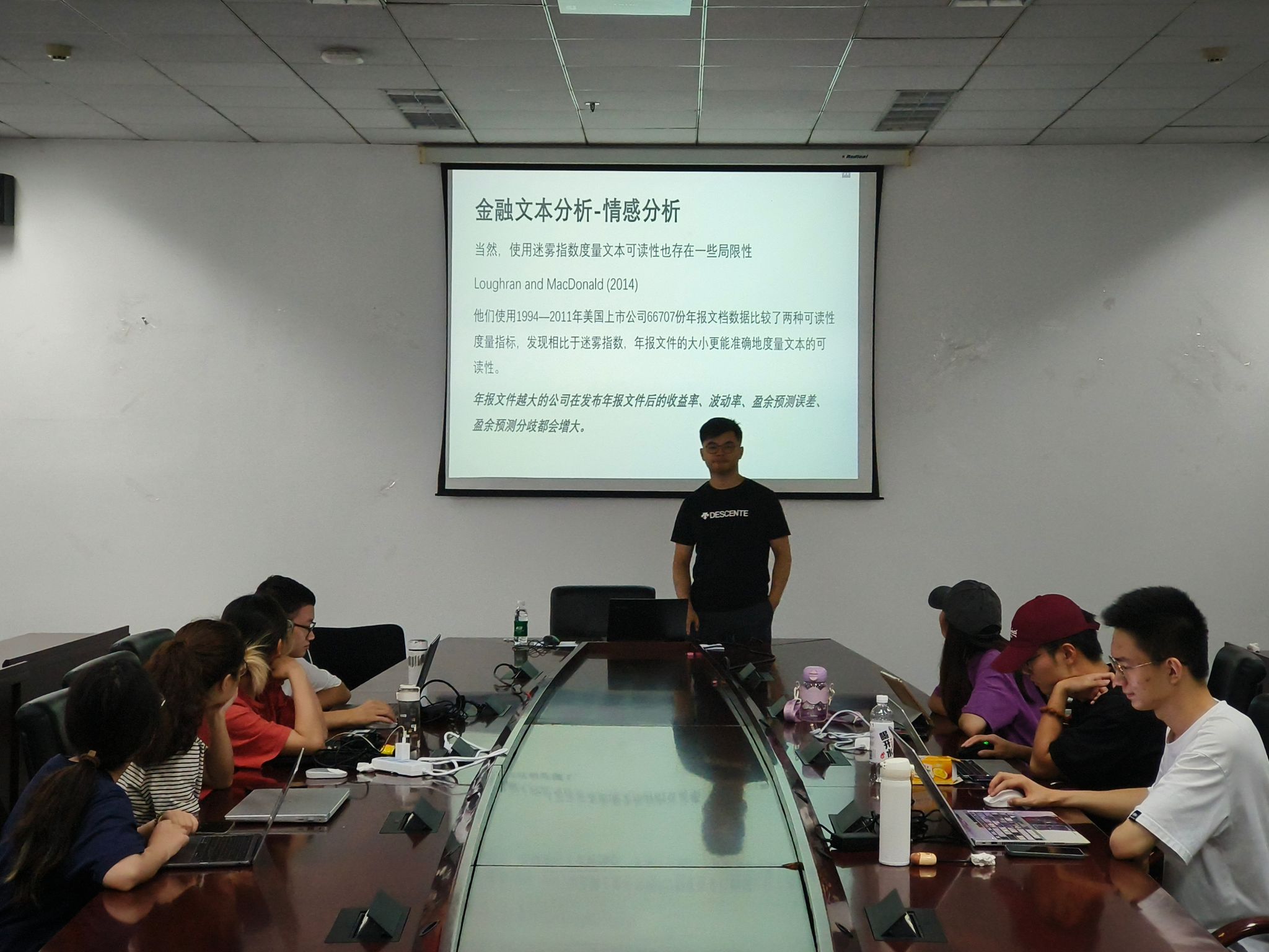 7月15日,《金融科技前沿方法专题》课程现场。申峰老师通过两个具体案例为大家引入本课程的相关知识。