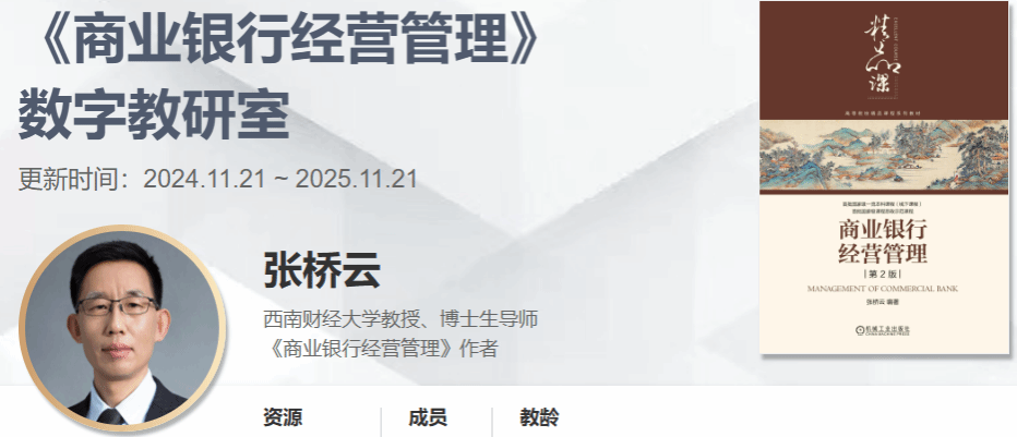 近几年,张桥云教授除思考和探索商业银行教材中国化外,一直秉承“以资源化让员工增负”和“以数字化为老师减负”的课程建设思路,希望对减轻大家的教学负担,特别是让青年教师在解决课程思政不敢讲不愿讲不会讲问题方面发挥积极作用。现在上线的“商业银行经营管理”课程数字教研室是他在这方面的新的尝试。