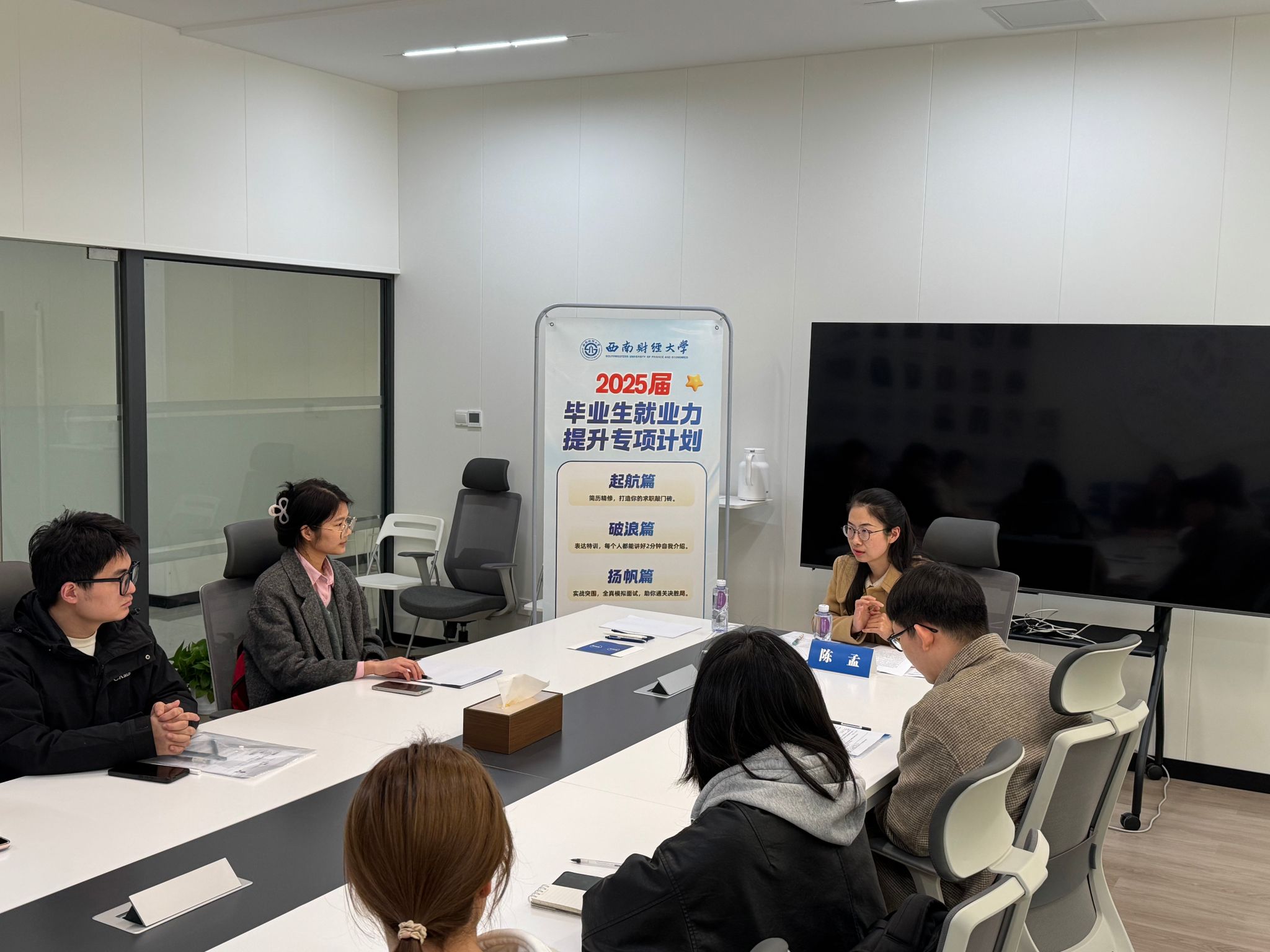 简历精修环节,老师们结合行业趋势与招聘实践,为同学们提供个性化简历优化指导;表达特训环节,老师们对员工进行一对一指导训练,帮助同学们摆脱不敢开口、开口无重点无亮点的困境,打造2分钟自我介绍,建立面试官“记忆点爆破时刻”;实战突围环节,老师们结合招聘实践组织开展模拟面试,注重每一轮面试后的一对一反馈和点评指导,帮助员工切实提高面试技能。