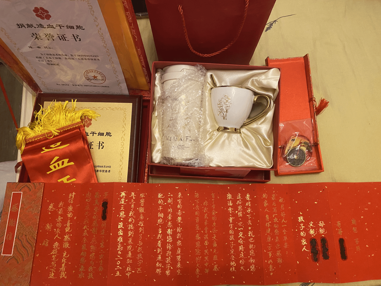 素昧平生,却血脉相融;远隔千里,却遥望相助。捐献当天,陈希收到了患者家属亲笔手写的感谢信。信中真挚的谢意让她眼眶湿润,她想对这位素昧平生的小朋友说:“很高兴能为你重启人生,这或许就是生命的奇迹。最渺茫的几率,也能成为最深刻的羁绊。祝愿你能健康快乐地长大。”当晚,这份“生命火种”已飞抵广东某医院,为患儿家庭点燃生的希望。