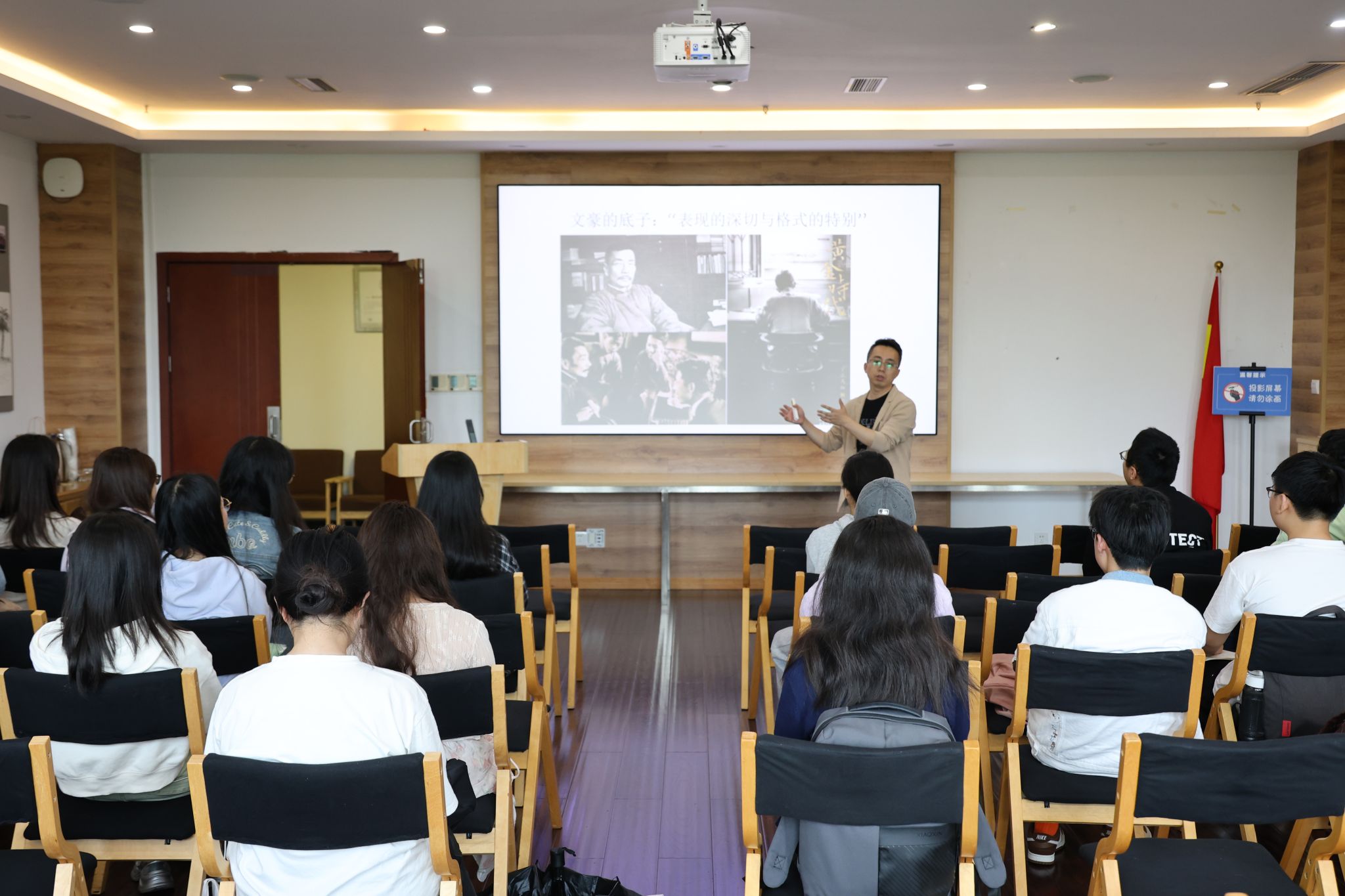 讲座从鲁迅先生的人生轨迹切入,从家世背景、学业经历、救国之志、文学梦想及与《新青年》的交往等多维度,揭示了这位文学巨匠在时代洪流中的思想演变,深入剖析了中年鲁迅何以成为新文化运动旗手的历史必然性。讲座现场气氛热烈,康斌老师以丰富的史料和生动的案例,将鲁迅的文学人生与五四精神紧密结合,让同学们深刻感受到鲁迅作品背后的家国情怀与时代担当。此次讲座不仅激发了同学们对鲁迅文学与五四精神的浓厚兴趣,更增强了文化自信与历史使命感。