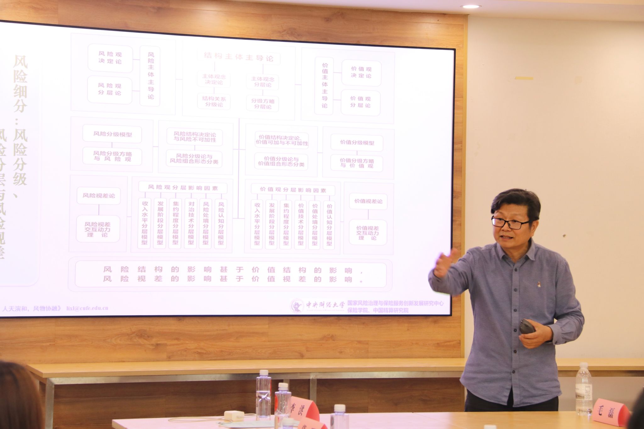 在交流座谈结束后,李晓林教授为公司师生报告了题为《多层次风险保障体系与应灾资源适配:从风险治理到价值创造和资源配置》的专题讲座,系统阐述了保险结构关系,从哲学的角度启发员工,现场气氛热烈、反响良好。讲座结束后,郑苏晋副经理还面向公司本科三年级员工开展研究生招生宣讲,详细介绍了中央财经大学保险公司的培养体系、课程特色及资源优势,并热情欢迎西财学子积极报考,继续深造。