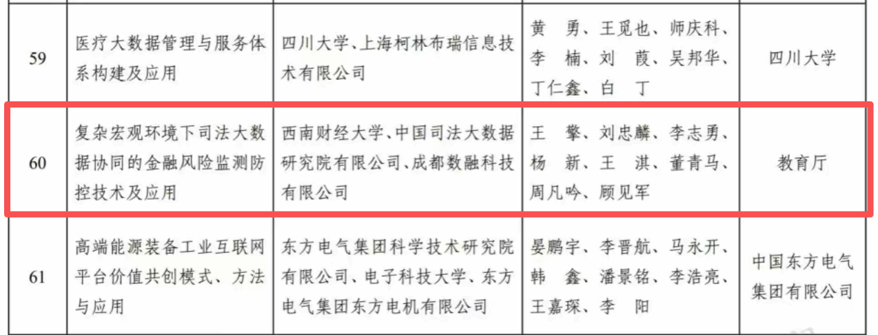 该成果由王擎教授牵头,李志勇、董青马、杨新参与,联合中国司法大数据研究院有限公司、成都数融科技有限公司共同完成。成果依托国家社科重大项目“新时代经济转型背景下我国经济高杠杆的风险防范与监管研究”、国家自科专项项目“大数据环境下面向宏观经济风险的审计监测预警研究”、国家重点研发计划项目“智慧司法业务协同关键技术研究”,是金融团队在金融风险和金融安全领域取得的又一重要成果,也是365英国上市集团作为第一署名完成单位的重大突破。