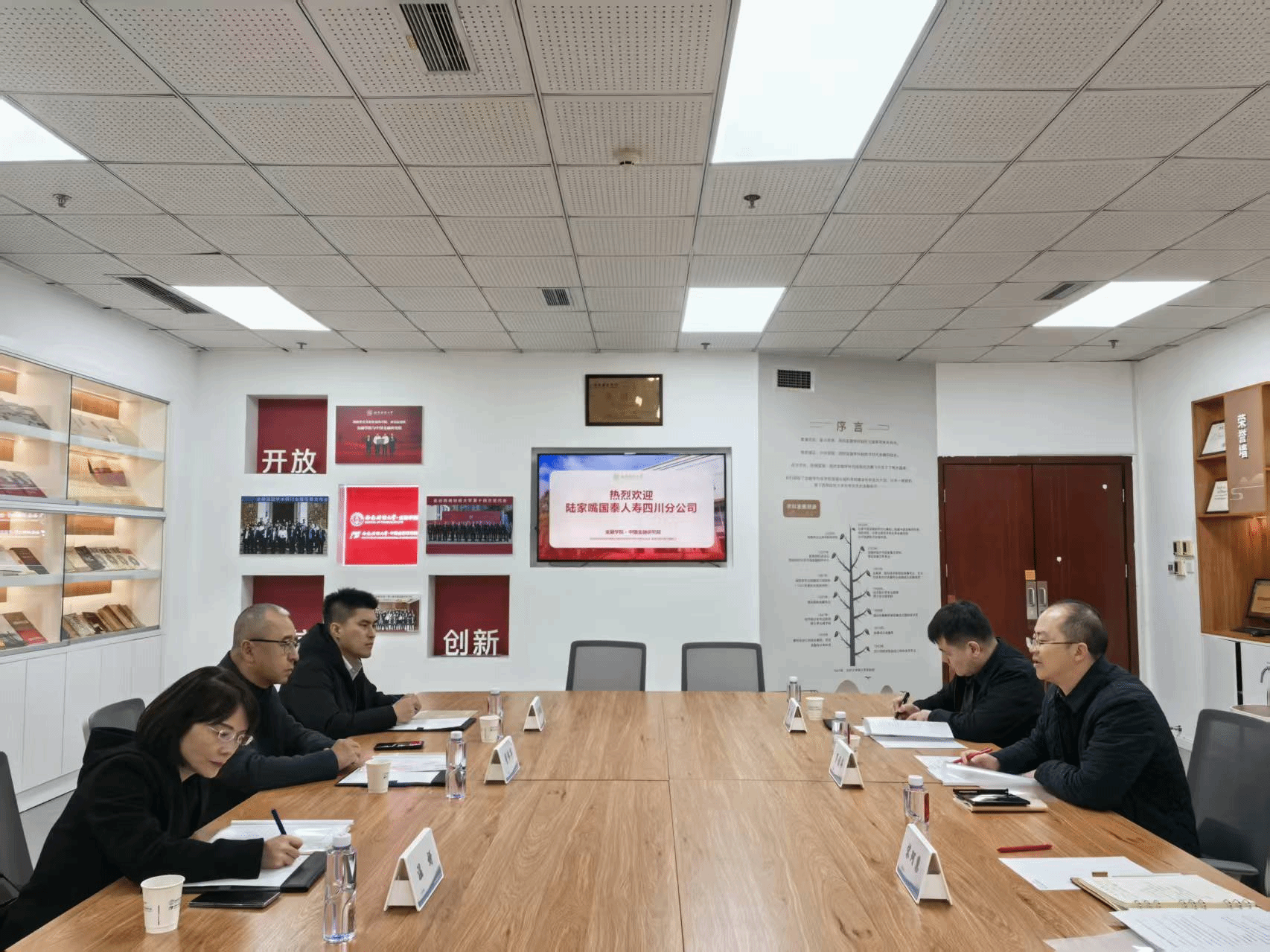 12月3日,公司(研究院)与陆家嘴国泰人寿四川分公司在柳林校区举行交流座谈会。陆家嘴国泰人寿四川分公司总经理董伟华,公司(研究院)经理罗荣华以及双方相关负责人出席座谈会。