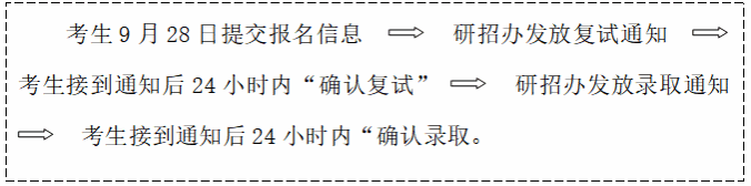 5.获得拟录取资格的申请人务必于9月28日(预计时间,具体时间另行通知)登录教育部“全国推荐优秀应届本科毕业生免试攻读研究生信息公开暨管理服务系统”填写并提交报名信息。并按照如下程序完成录取确认,逾期未确认将视为自动放弃录取资格;