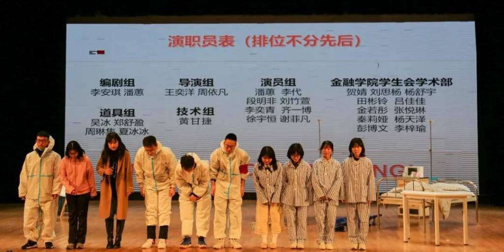 The Cherry Blossoms Are About To Bloomis written, directed and performed by students from The School of Finance. Full of passion and love, they spent 30 hours on the stage polishing the performance and bringing the script to life. The drama expresses the strong voice of the contemporary youth and the touching story of fighting against the epidemic, outlines the heroic spirit of ordinary people in the face of crisis, reflects the patriotism of the young people in the current national crisis, and shows the perseverance and great vitality of the Chinese nation.
